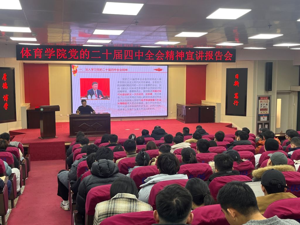 报告主要围绕“党的二十届四中全会是关键时期召开的一次十分重要的会议;全面理解“十五五”时期经济社会发展的战略任务和重大举措;深入贯彻落实党的二十届四中全会精神,推动学院各项工作高质量发展”三部分展开。田旭书记结合国际、国内形势和体育事业发展趋势,强调全体师生要深刻认识全会的重大意义,准确把握精神实质,主动对接国家战略需求,把握体育在促进健康中国、教育强国、文化强国建设中的重要作用,增强学院发展的时代感与使命感。